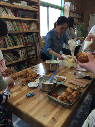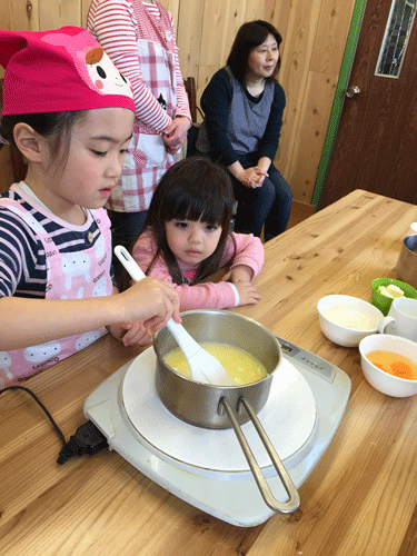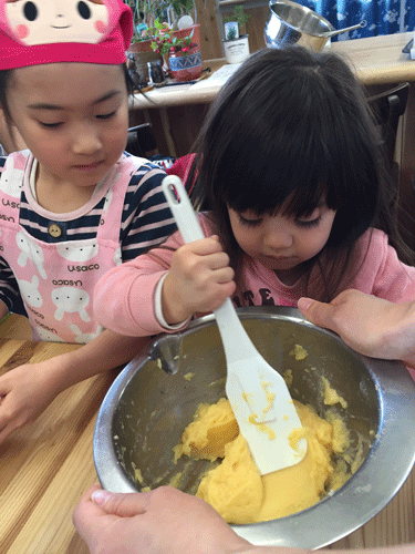 子供達も、小さい手で一生懸命、コネコネ混ぜ混ぜ♪ 気がつくと、そんな写真ばかりで、肝心なシュークリーム作りの工程や仕上がり具合の写真は、殆んどあ~りません。