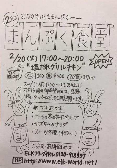 まんぷく食堂のお知らせ 2018/02/14 久々のまんぷく食堂です。 サイドメニューのスープですが、ビーツが思うように育っておらず、メニューが変更になるかもしれません でも温っかスープはありまーす ご予約も受け付けております