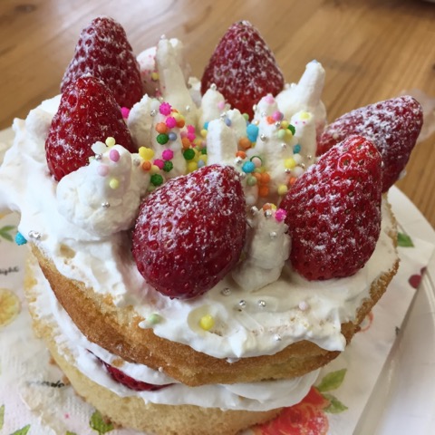 苺の季節にしか出来ない🍓たっぷりの生デコケーキ、2回目。