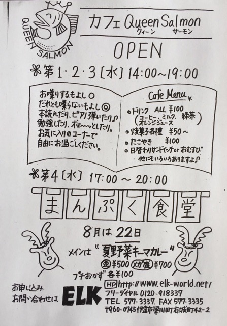 まんぷく食堂 2018/08/19 今週も始まりました。 夏休みも最後の週。 宿題終わらずキーキーしているお母さんも、お婆ちゃんも、お父ちゃんもお爺ちゃんも(笑)せめてご飯オサボリして、まんぷく食堂へ サイドは、ジャガイモのバジルソース和えと、無限ピーマンソテーです。 お待ちしとりやーす