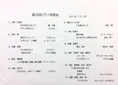 新しく始めた1年生の女の子も、緊張しながらも堂々と最後まで弾けて、素晴らしかったし、とても可愛らしく、見にいらしたお婆ちゃんも目を細めて聴いていました。