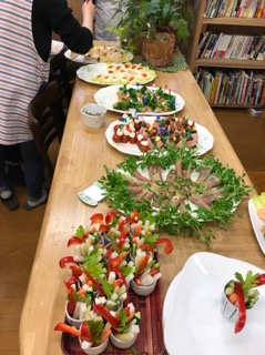 皆さん手際よくてあっという間に、出来上がっていくので、パーティーも早く始められて、おつまみ片手に飲み物も進み、お喋りもはずみ、賑やかな楽しいあっという間の3時間でした🎶
