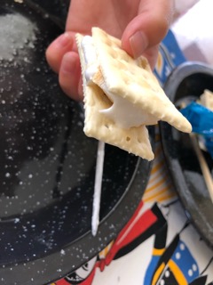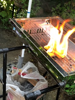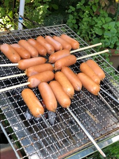 自分達で起こした火で、炭を燃やしフランクフルトを焼く!
