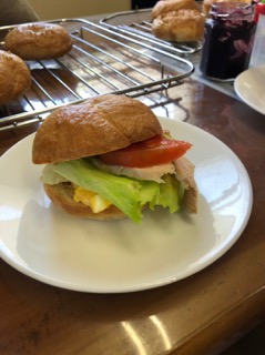 協力体制完璧で、捏ねる、形成、発酵、茹でる、焼く、サンドイッチの具材を切る等など沢山の工程もなんのその。