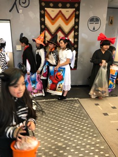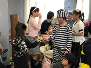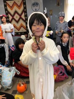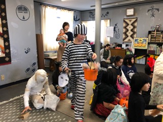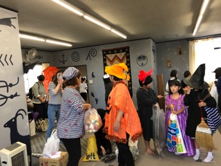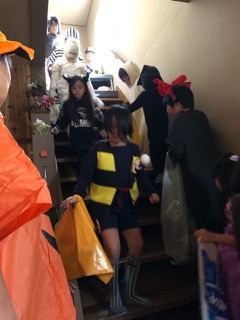 そんなはじめての状況の中で、我らスタッフもお掃除着から3分で変装し、二階と階段のみの小さなパレードになりました。