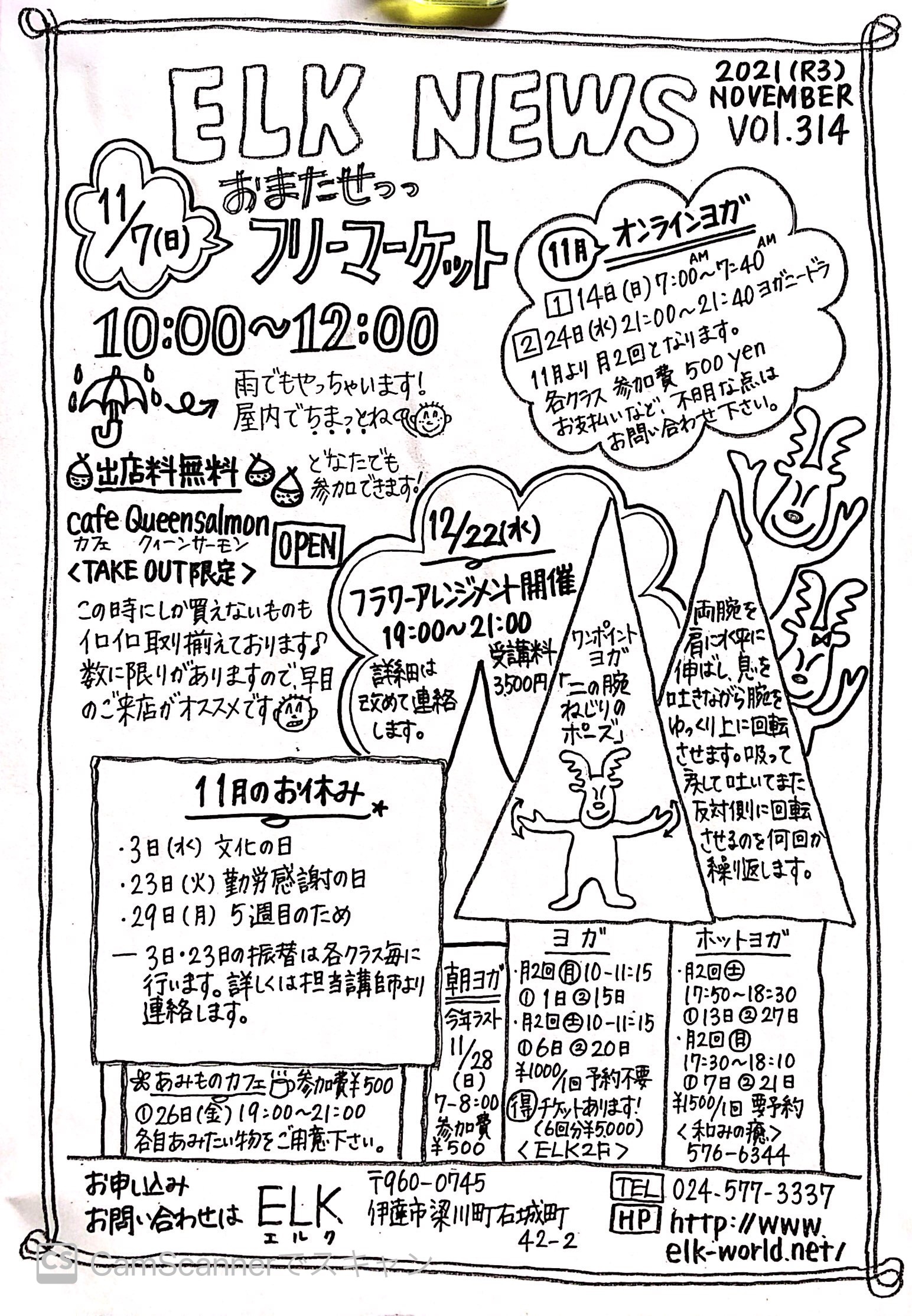 ELK NEWS 11月号♪ 2021/10/31 なんと11月に突入〜😮 天災やコロナ、様々な状況変化の中で、私達も柔軟に対応しながら、楽しい事、大事な事を忘れずに過ごしていきたいと思っています。 今月はフリマでしかお会いできない方々に会えるのも心底楽しみです。 引き続き、感染対策しながら、元気に過ごしましょう🍄