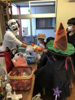 お母さん達も変装して、お菓子を配ってくれたり、フェスタの手伝いをしてくれたりと、盛り上げてくれて、感謝感激雨霰です。