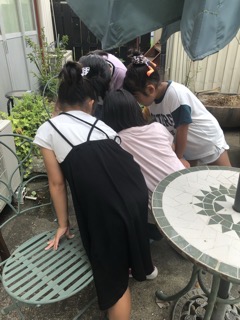 虫の観察と外に出向き、庭で