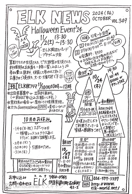 ELK NEWS10月号🌰 2024/09/30 ようやく過ごしやすい季節となりました。 台風の季節でもあり、温度差で体調も崩しやすい時期でもありますが、美味しい食べ物に楽しい催し事も沢山。 無理せず元気に楽しんでいきましょ〜🎃