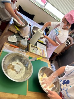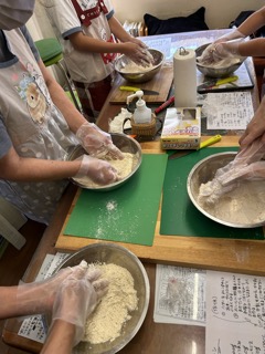 粉とバターをすり合わせの工程が、子供の泥遊びみたいで楽しそうでした。