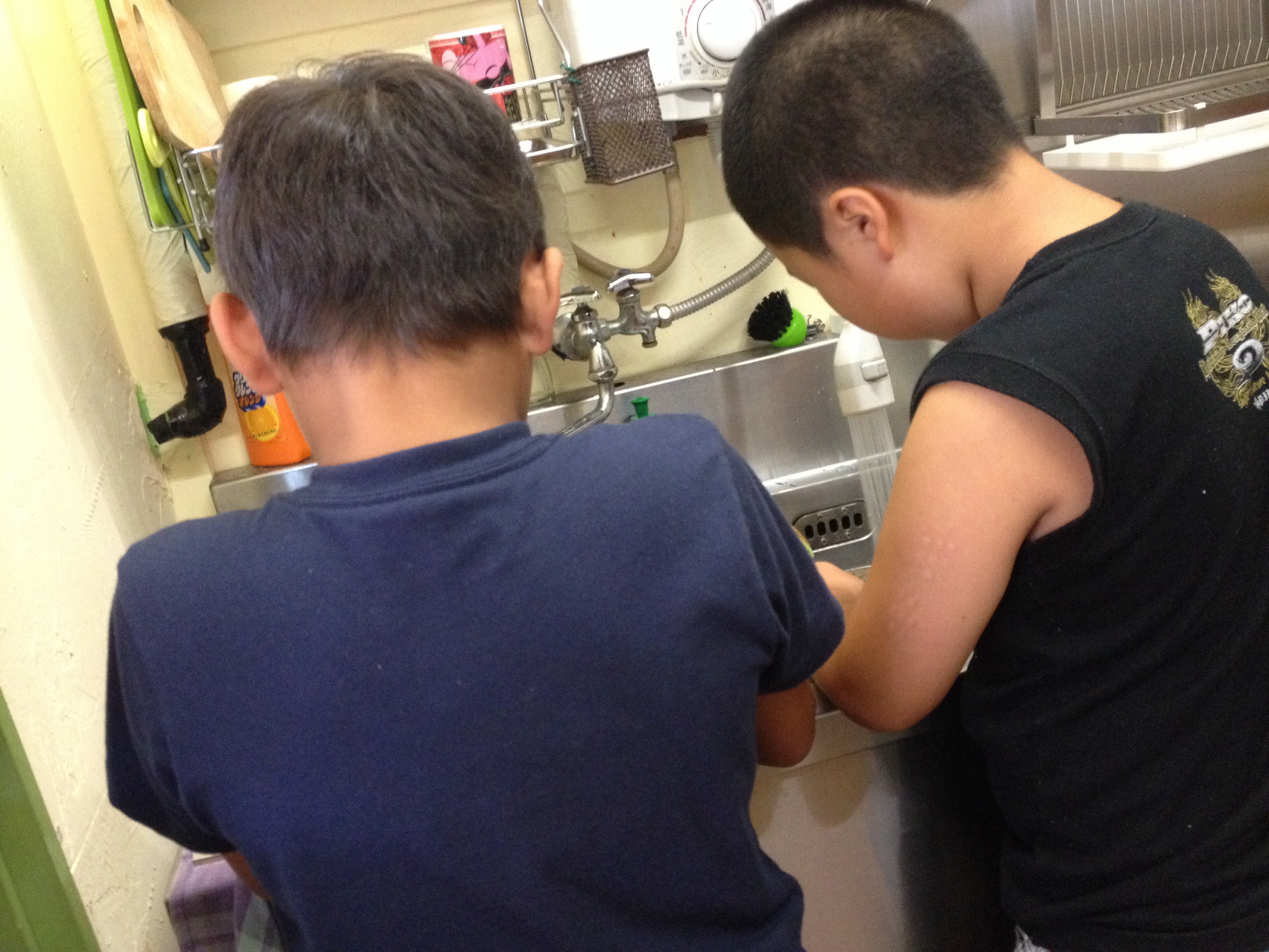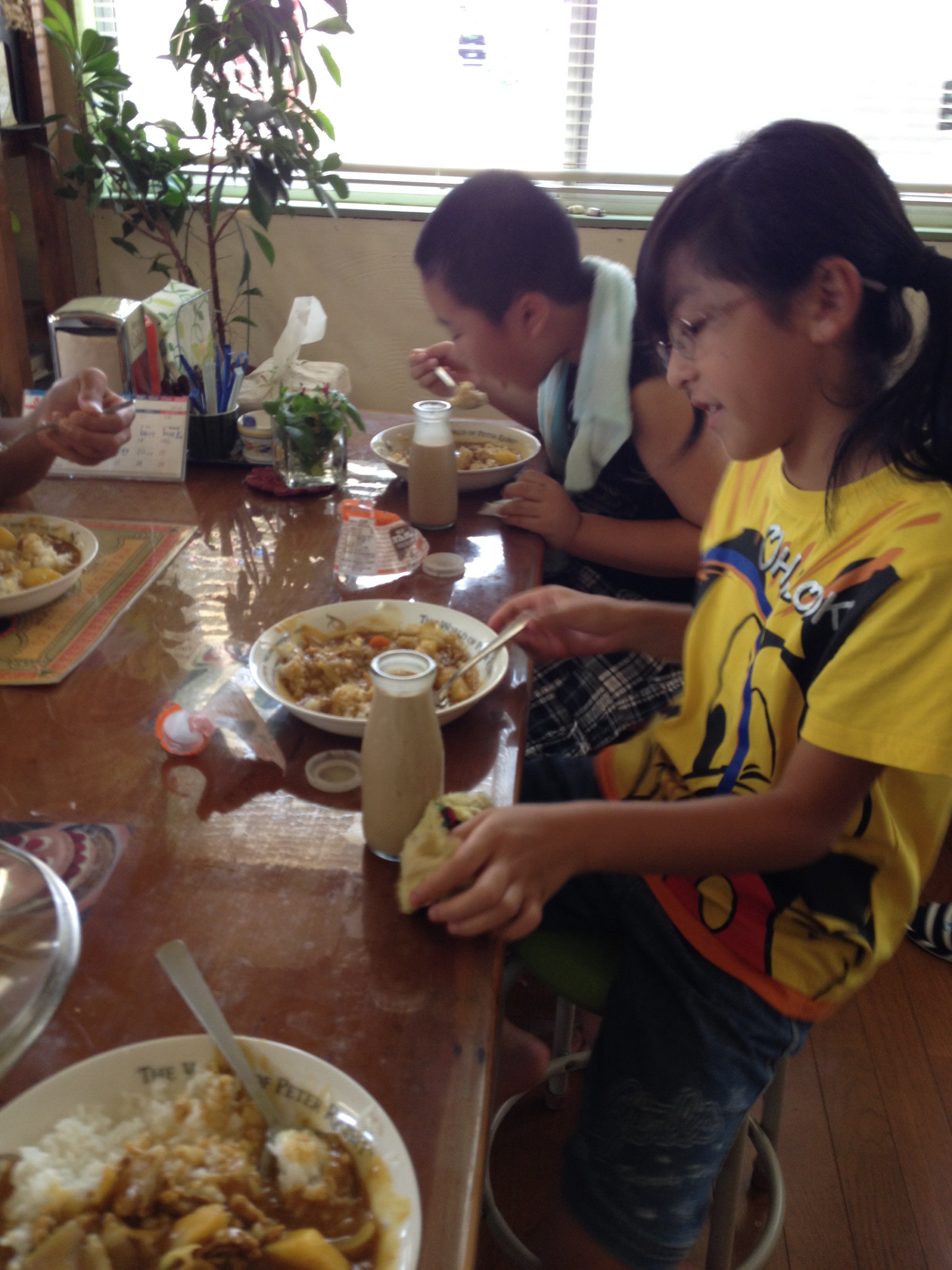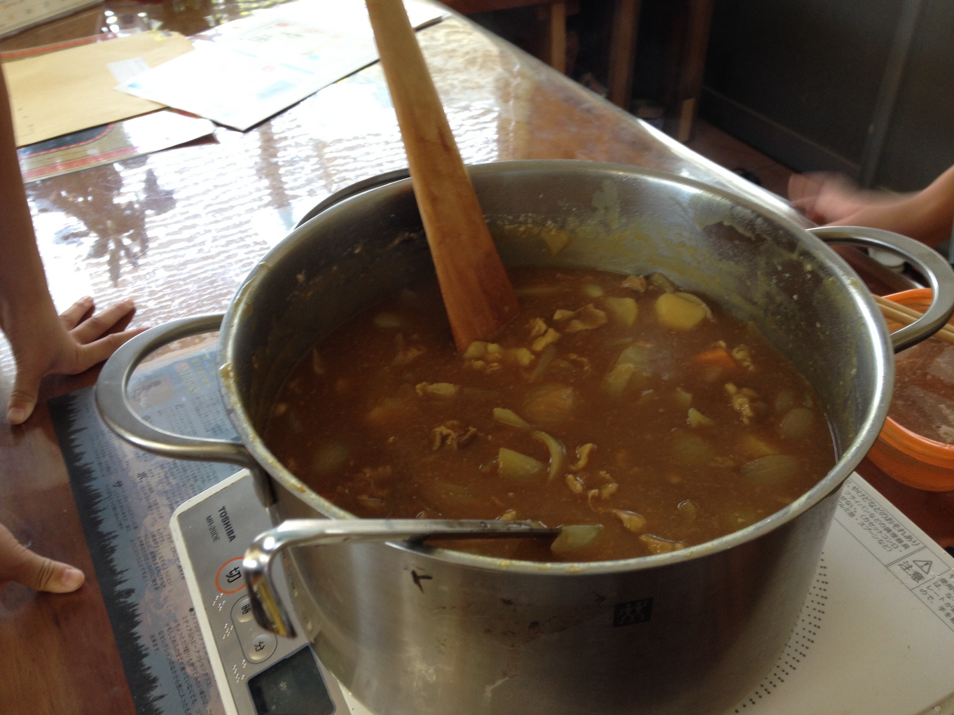 お昼はみんなで、カレーを作り、米をといでご飯を炊き、デザートを作りました。